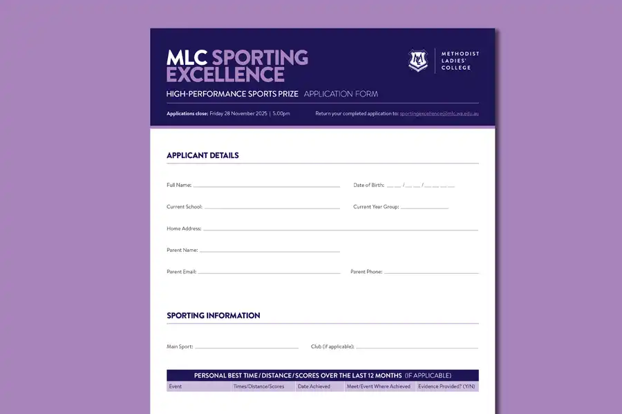 Download and return the completed application form to sportingexcellence@mlc.wa.edu.au by the closing date.